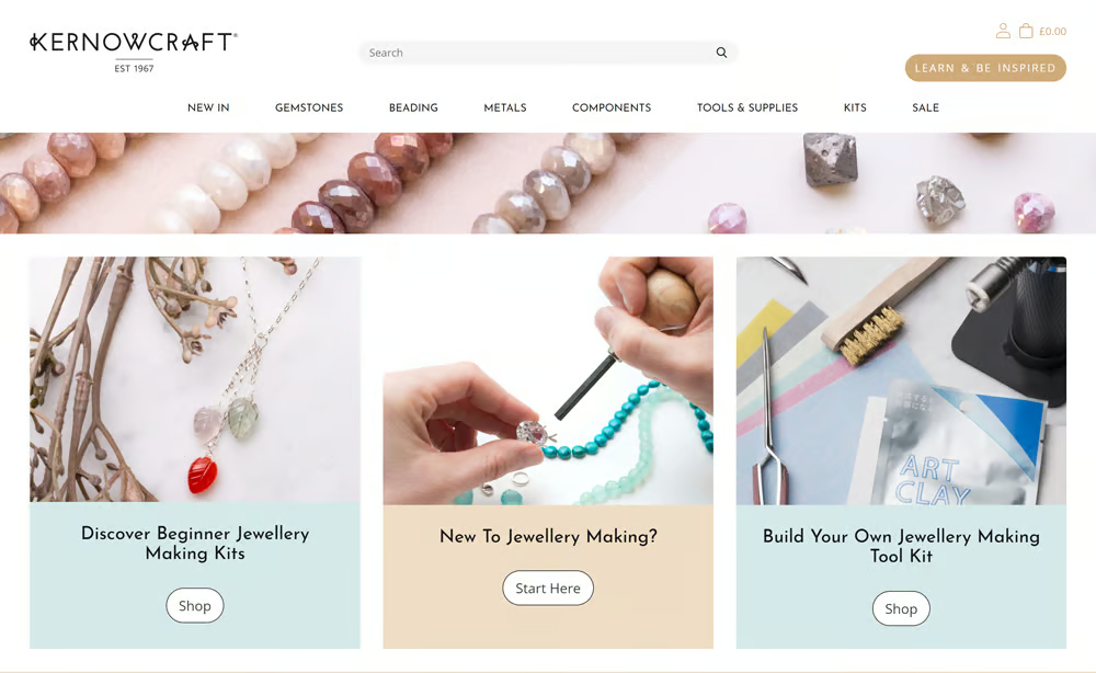 The Introduction of the ‘Learn and be Inspired’ section really leans into helping makers at all levels with techniques and skills, with a vast, supportive community that are loyal to Kernowcraft this resource area now has a new home with UX that leads the user clearly and quickly to what they are looking for.