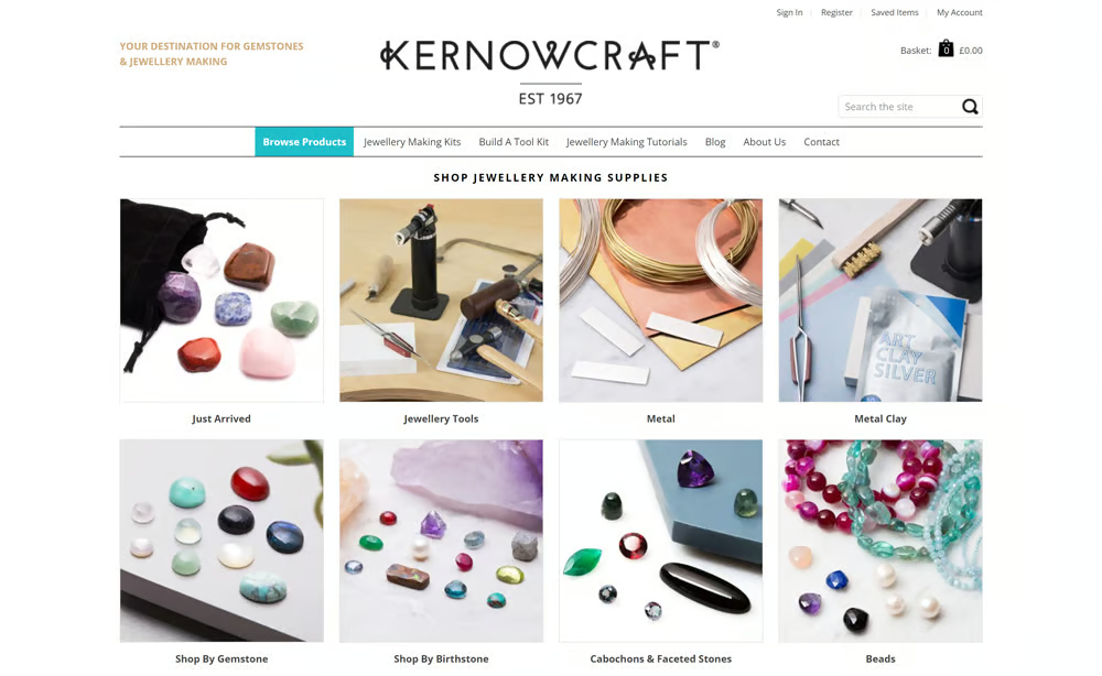 This led to the problem of users struggling to find the items appropriate to their level of skill and expertise from the vast array of products, beads, wires, stones, components and tooling available from Kernowcraft.