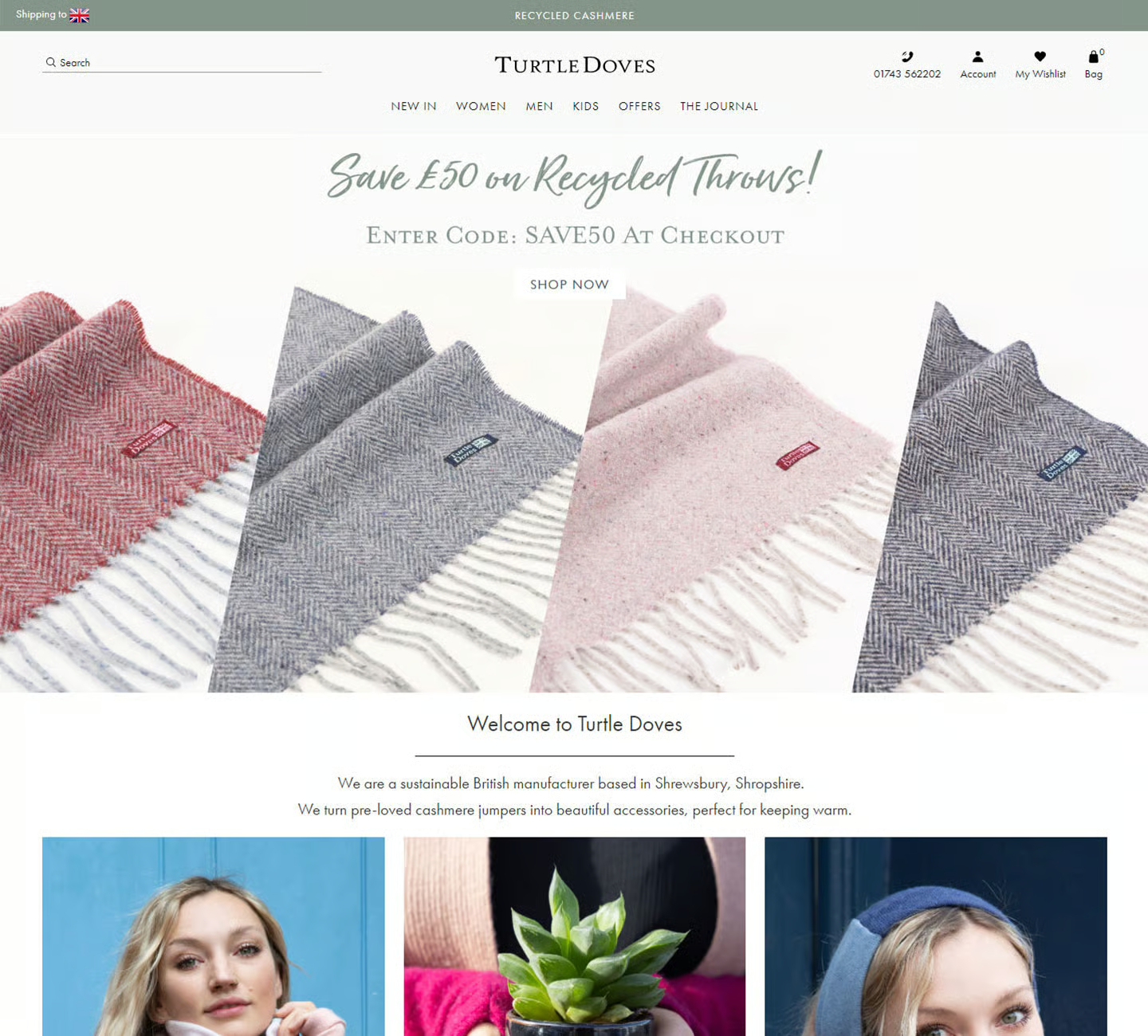 Turtle Doves, a fantastic British design and manufacturing company specialising in using post-consumer cashmere jumpers to create beautiful new garments and accessories. In 2022 they were acquired by the Refined Brands group, who are a family of sustainable fashion brands with a shared vision. Webselect who have been developing and supporting eCommerce businesses since 1998 are proud to be the eCommerce development partner for Refined Brands and this project welcomed the Turtle Doves brand onto their eCommerce platform of choice, Webselect’s SelectCommerce.